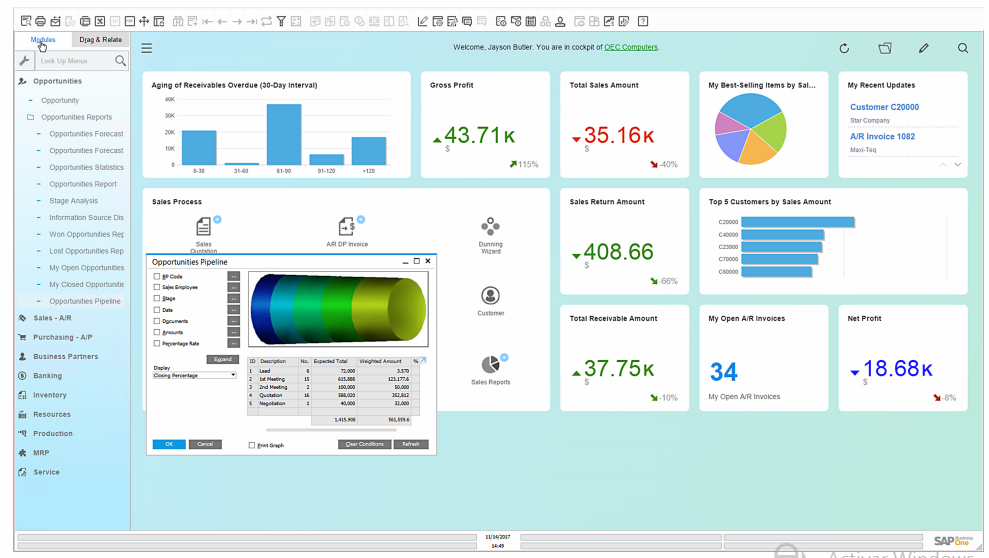 Capture todos sus datos en un sistema de planificación de recursos empresariales (ERP) para pequeñas y medianas empresas. Nuestro software de ERP on-premise y en la nube lo ayuda a gestionar todos los procesos de la empresa, desde la contabilidad, el CRM hasta gestión de cadena de suministro y compras.